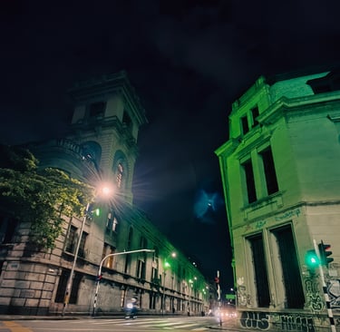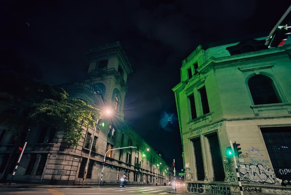 El centro de Medellín, ese corazón antiguo que aún late con fuerza entre neones, pasos rápidos y esquinas llenas de historias. De día, bulle de vida. De noche, guarda secretos. Las fachadas coloniales se tiñen de luces verdes como si respiraran en la penumbra, mientras los grafitis gritan desde los muros que aquí todo se transforma, nada se borra. Esta imagen capta ese instante suspendido donde la ciudad descansa sin apagarse.